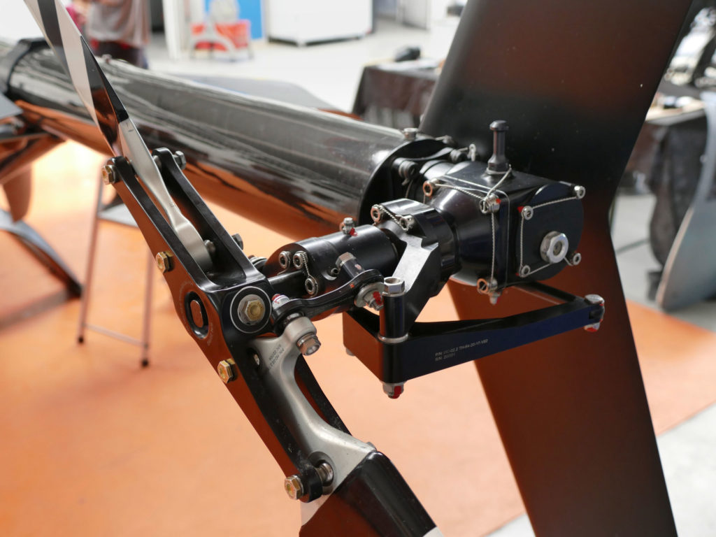 Etwas ungewöhnlich sehen die nach außen breiter werdenden Blattspitzen aus. In diese sind acht Kilo schwere Metallplatten einlaminiert, um Lärm und Vibrationen zu reduzieren. Die so verbesserte Aerodynamik soll sich auch positiv auf die Autorotation auswirken. Ob das tatsächlich so ist, wird sich beim Probeflug zeigen.